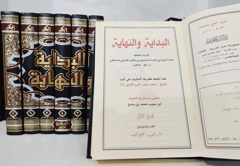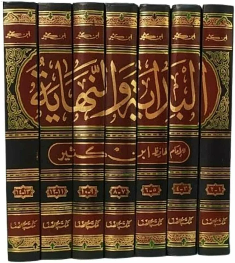 The book The Beginning and the End in 7 volumes is a huge historical encyclopedic work, written by Ibn Kathir Ismail bin Omar al-Dimashqi, who died in the year 774 AH, and the book is founded according to the beliefs of the Islamic religion. It is a presentation of the history from the beginning of creation to its end, which begins with the beginning of the creation of the heavens, the earth and the angels, to the creation of Adam, then touches the stories of the prophets briefly, and then details the historical events from the origin of the Prophet Muhammad, may God bless him and grant him peace, until the year 767 AH by the method of tabulation over the years. The Sunnah begins by saying, “Then a year has entered…” Then he lists the historical events in it and then mentions the most prominent people who died in this year. As for the end part, it includes the signs of the hour until Judgment Day in detail.